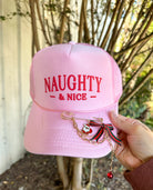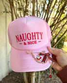 Naughty & Nice With Bow Pin Light Pink Trucker