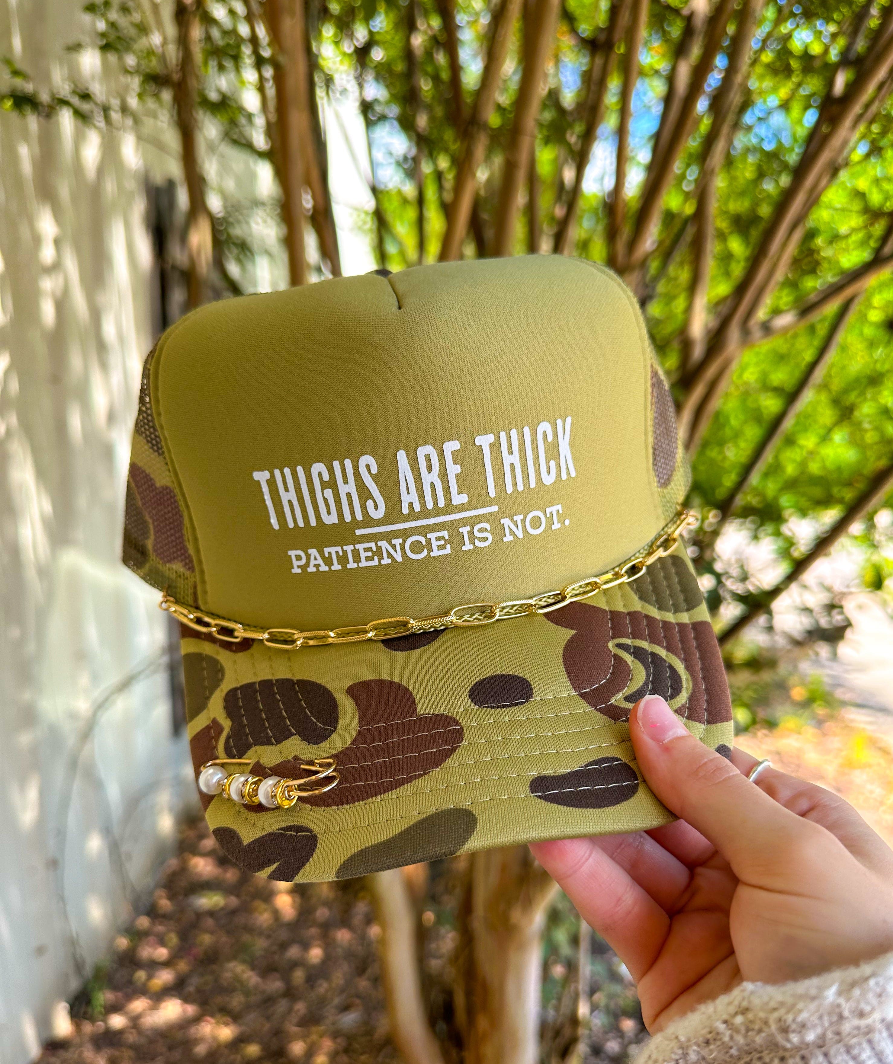 Thighs Are Thick Chain & Pin Two-Tone Camo Trucker